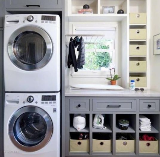 其次安放洗衣机的空间,需要预留出洗衣机两边5-10cm的距离,背面则需预留出5cm的距离,用来安放进水管和排水管。