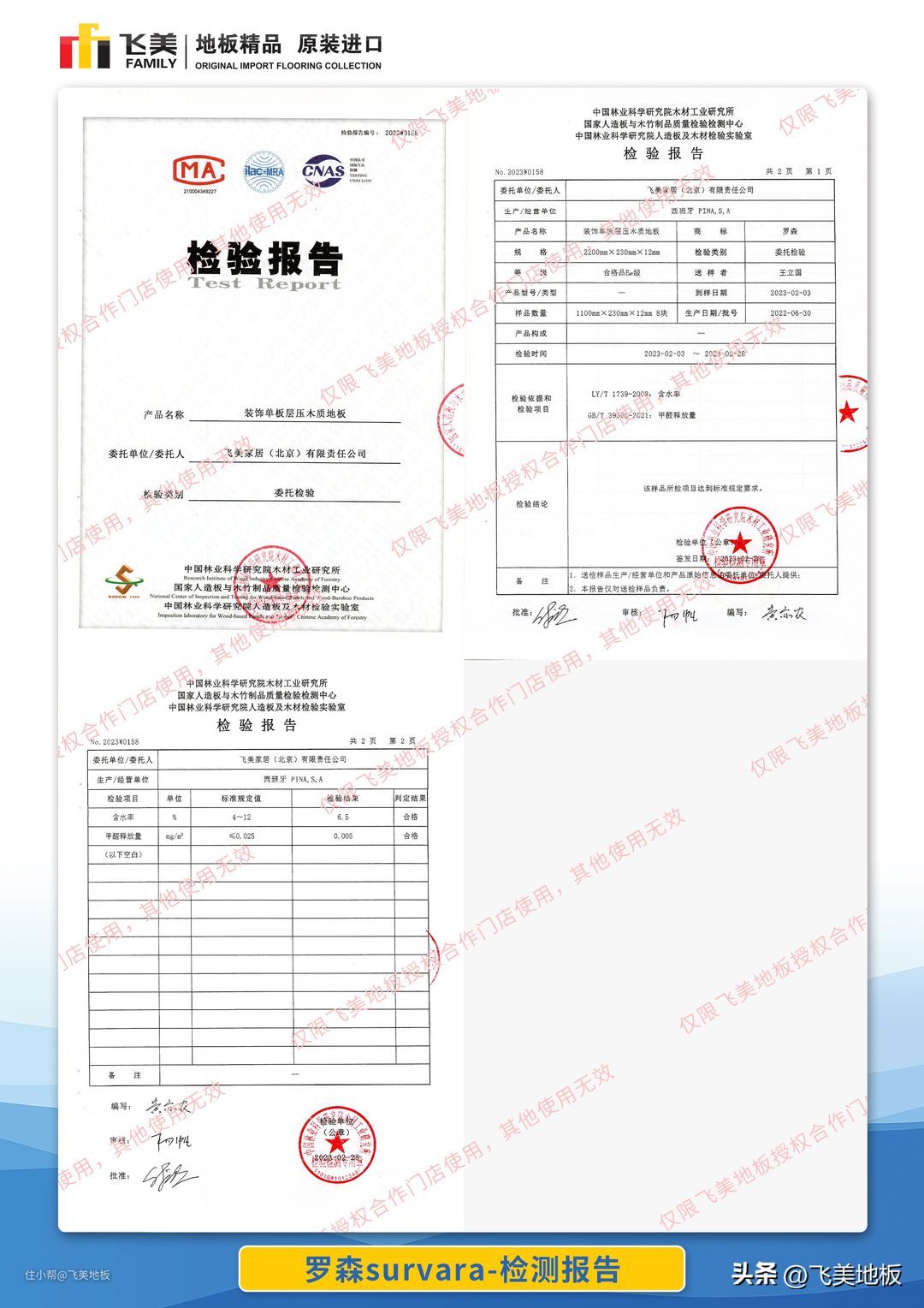 秘诀2:查——产品检测报告了解了地暖环境对地板甲醛释放量的要求之后,就要擦亮眼睛,留意查看商家提供的产品检测报告,重点关注是否能做到地暖环境的木地板甲醛限量值≤0.06mg/m³。