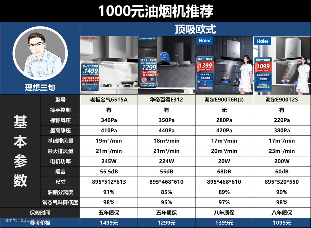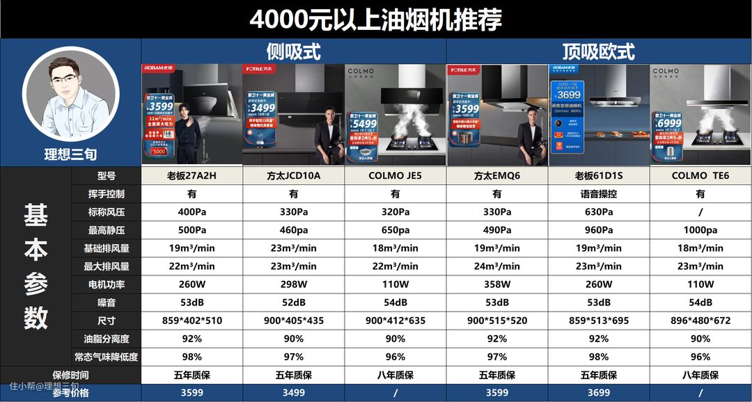- 预算多尽量选择4000元价位左右烟机,毕竟长久来看油烟机并非是损耗家电。