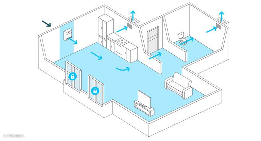 而新风系统是通过引入户外的空气,逐渐置换室内空气。