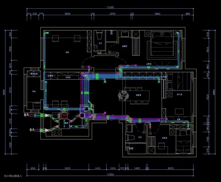 关于中央新风的更多内容,比如如何计算新风主机风量,风管选择,其他注意事项,本猿会另外写文章分享。