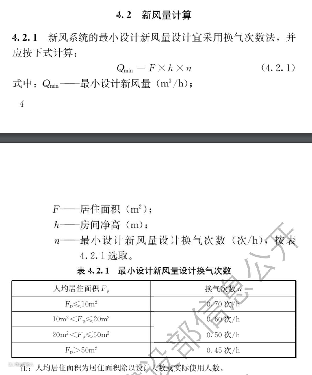 但是,这个只是新风系统的最低风量建议,所以说 30m³/(h*人)这个标准偏低。