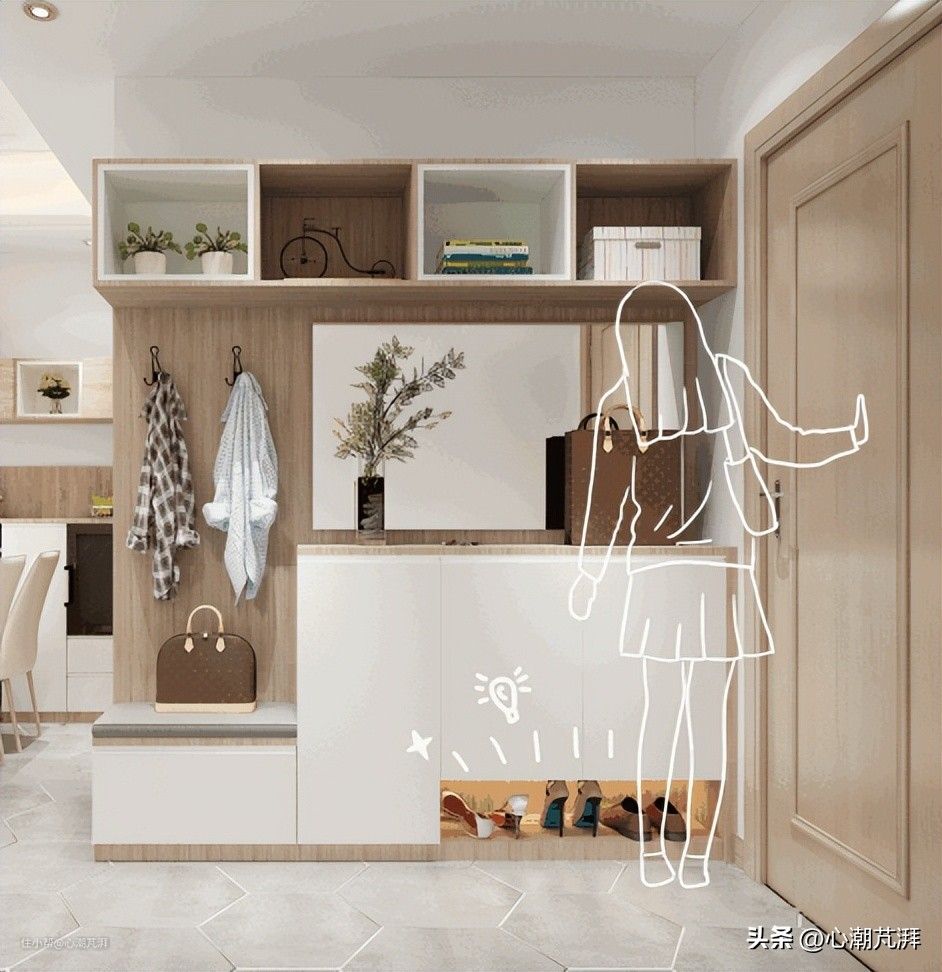 ▲进门的鞋柜处要可以安装一个感应灯区,方便进出门时更换鞋子。