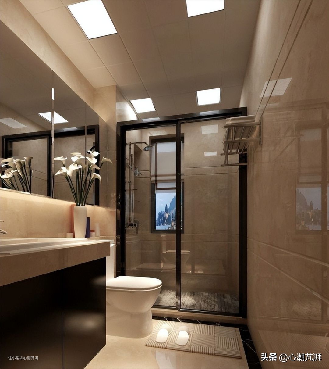▲厕所的镜前可以安装一个较为亮的暖光射灯,用于化妆。