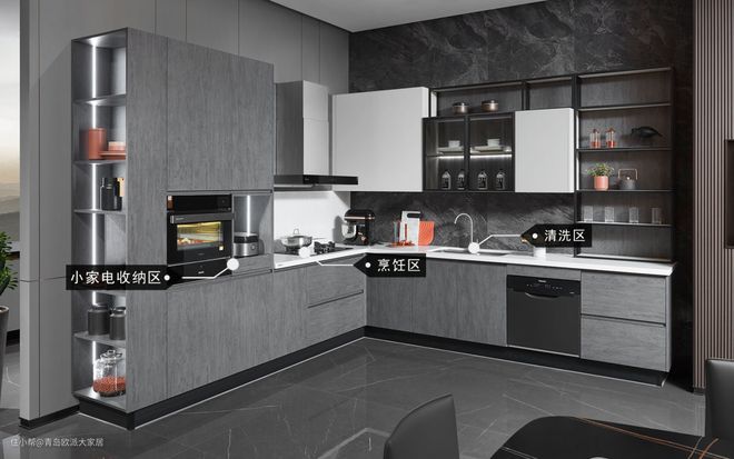 一般厨房主要有清洗区、备餐区、烹饪区、小家电收纳区等,在定制橱柜前需要根据布局顺序确定收纳区域,一般来说是根据洗、切、煮的顺序来,一气呵成,省心省力,提升下厨效率。