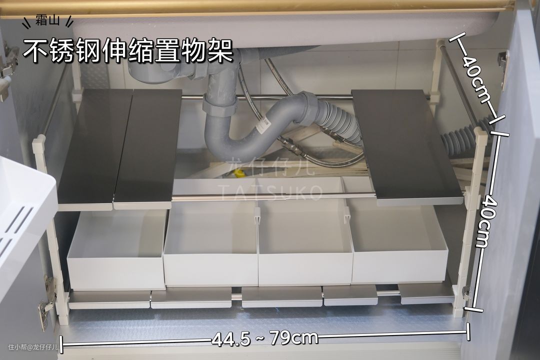 每个人家里的水槽柜各有各的实际情况,所以尽量选这种普适性比较高的,高度有五个档位可以调,面板也是宽窄两个尺寸,组合起来很自由。