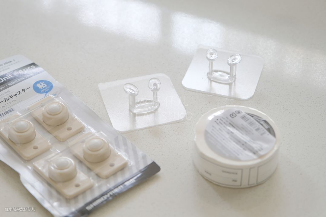 厨房插座没有换成带开关的那种,省事的补救方法是贴了几个插头挂钩,不用的插头拔下来后也有家可归。