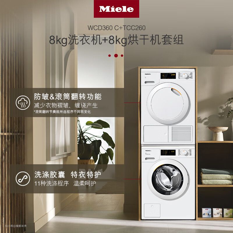 整组套装属于高端配置的组合,同时洗衣机和干衣机的容量足够大,预算合适的用户非常推荐;