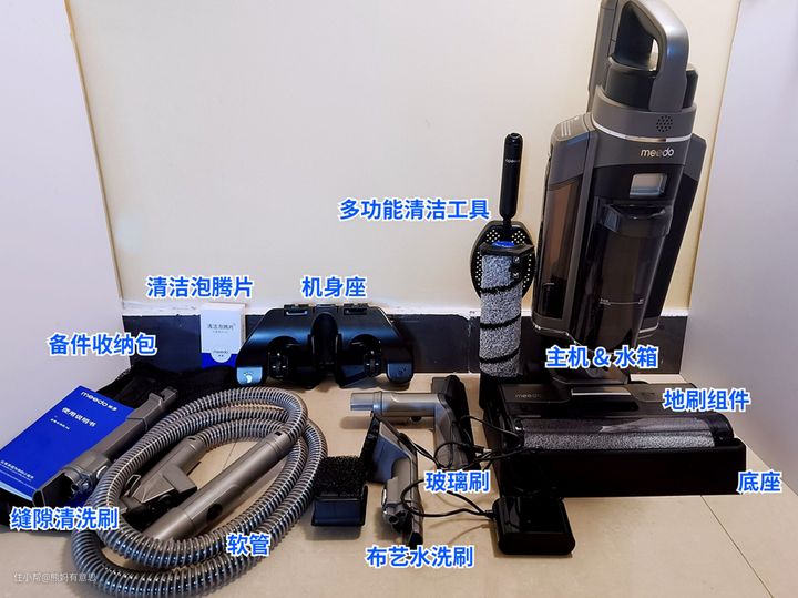 相较而言,传统洗地机更专注于地面清洁,米多A8在专业洗地能力之外,还有强大的水洗功能,通过布艺水洗模块、玻璃刷、缝隙刷,可以搞定家里各种软、硬平面,还有窄缝凹槽,至少我家吸尘器已经快被替代光了。