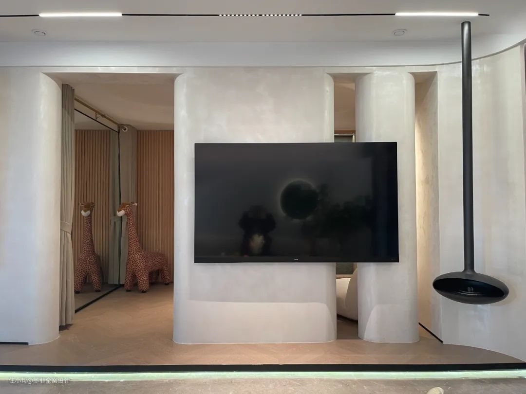 本案重视木色与白色做主色调,搭配素色沙发,整个空间呈现出自带温暖滤镜的气息,以至简的浅色营造空间氛围,创意灯带渲染出高级感.