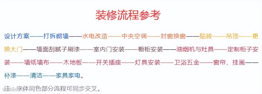 分享一个简版装修流程参考: