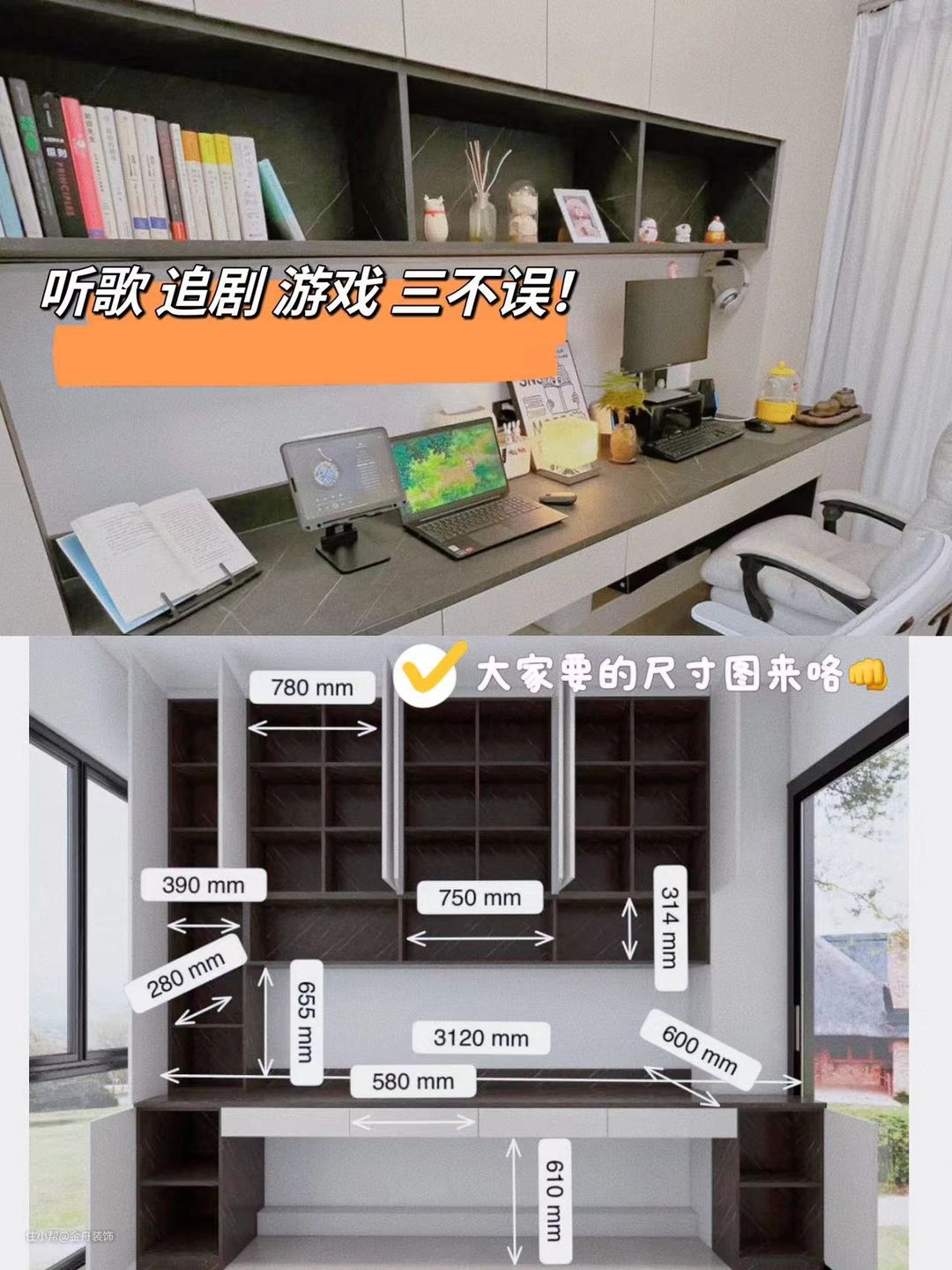 ✔️书桌尺寸:310cm*61cm*深度60cm