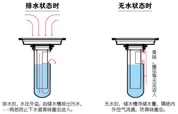 它的原理是和存水弯一样的,因为现在的开发商几乎都会做存水弯,再用深水封水封的话其实是一个重复的功能,所以大家在购买地漏的时候也要先弄清楚自己家的情况再去选购。