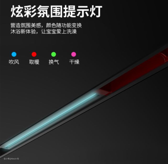 这个功能真的超赞,这款浴霸兼容18mm的轨道灯系列,配置了炫彩的氛围提示灯,吹风、取暖、换气和干燥四种功能,搭配四种彩色提示灯,营造炫酷的洗浴环境,给你不同的洗浴体验,特别是有宝宝家庭,使用这款浴霸,宝宝一定会超级喜欢洗澡的哦。