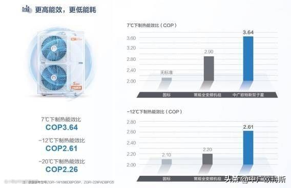 中广欧特斯地暖热泵空调应用了包括喷气增焓、航天智能除霜化雪等在内大量的行业新技术,能够智能判断自身结霜情况,保证高效及时地进行除霜,避免“无霜除霜”,浪费热量。同时,中广欧特斯地暖热泵空调工作时无需电辅,且制热效率依旧远远高于普通空调。综合下来,中广欧特斯地暖热泵空调在7℃时,制热无衰退,能效比高达3.64、-12℃能效比2.61、-20℃能效比2.26,耗电量远远低于普通空调。