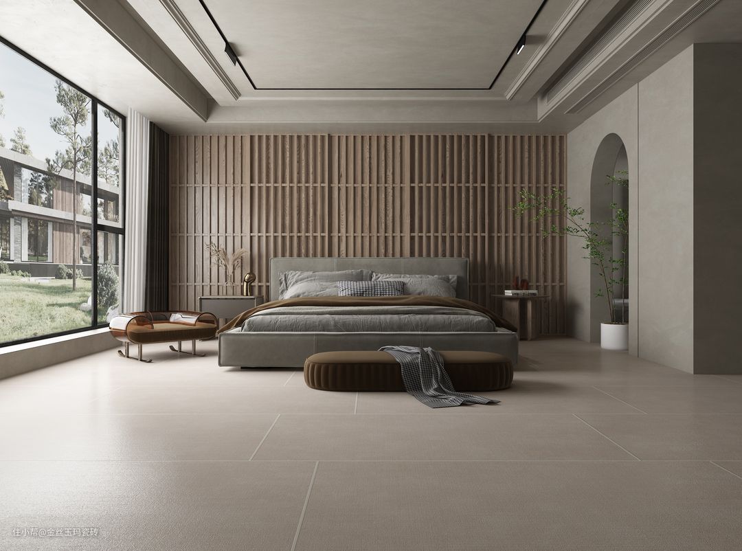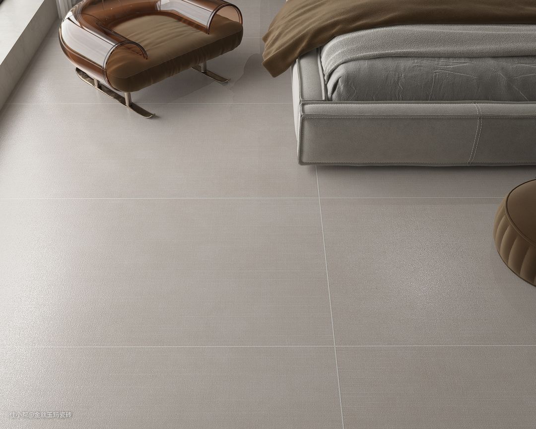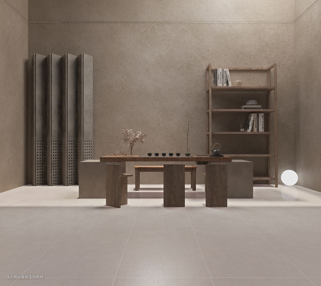二、材质一定要还原出原生态质感,在地砖的选择上可以以微水泥纹理为主,比如金丝玉玛贝拉时光质感砖系列,自然的水泥纹理,微光光感,让人视觉舒适,营造一种宁静自然的居家氛围,这也是侘寂风的灵魂~