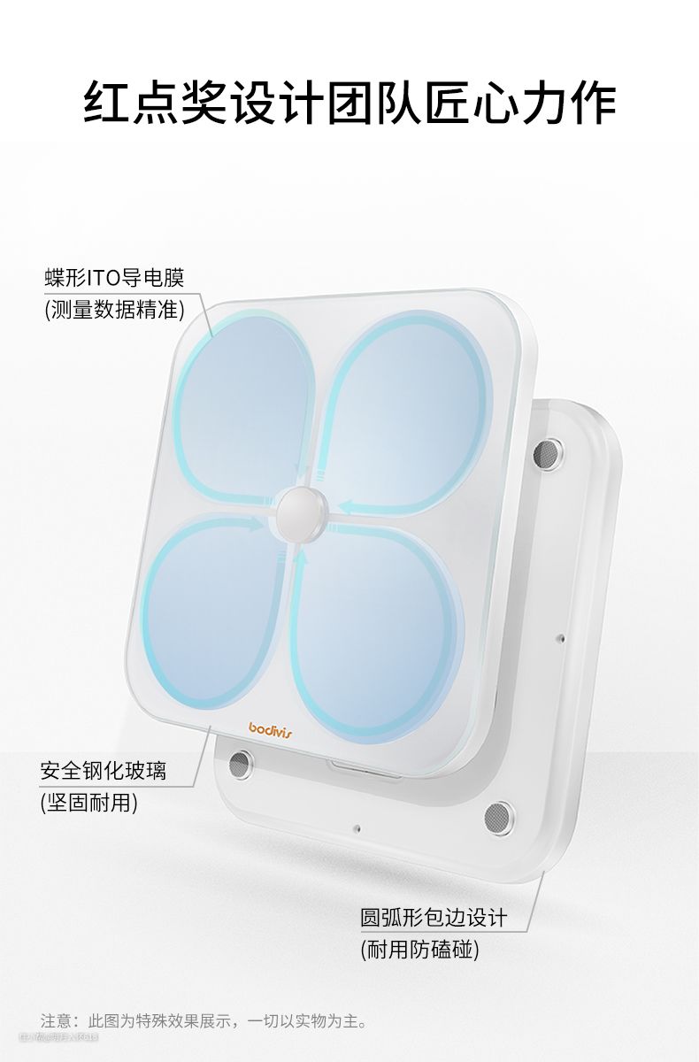 最早接触体脂秤的感念还是从小米体脂秤开始,当时宣传页面连一杯水的重量都能感知到的描述确实很吸引眼球,不过现在大部分的体脂秤都能做到了。