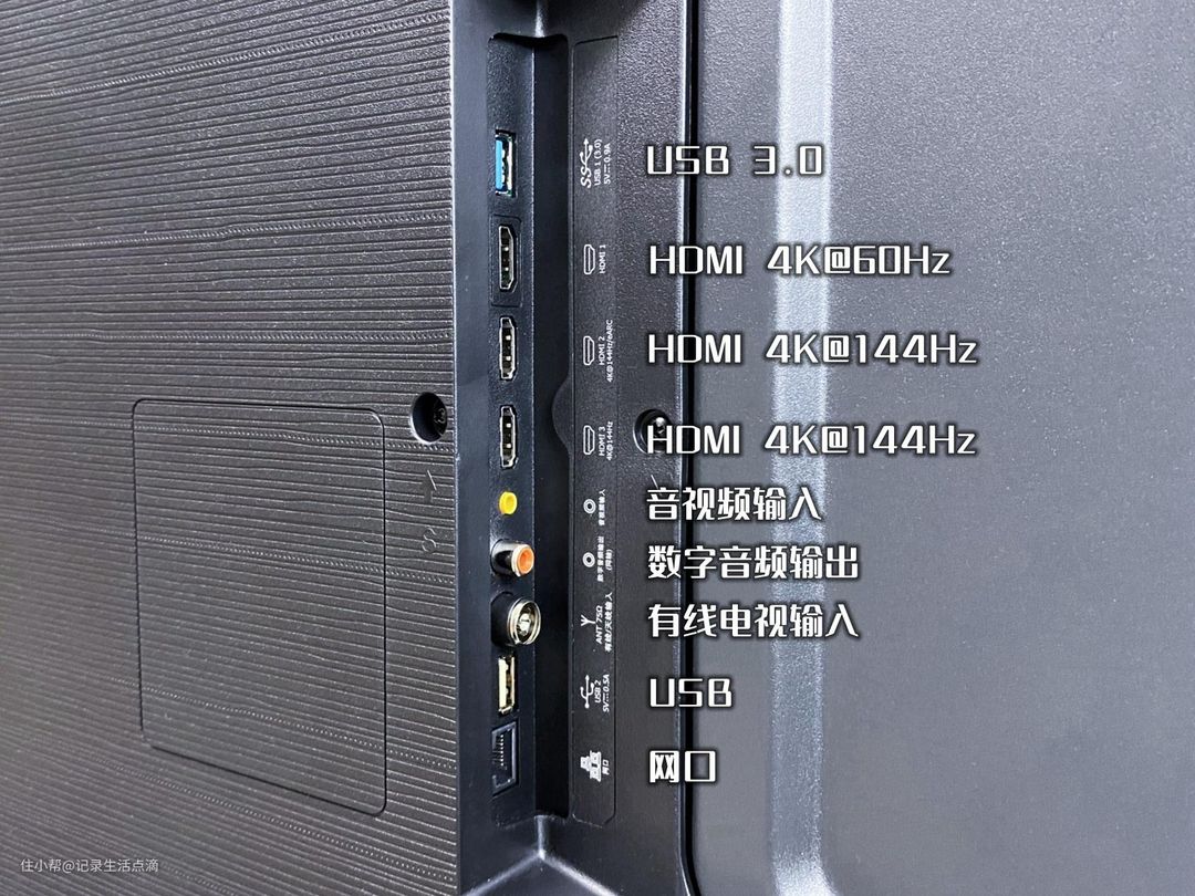 海信电视E5K配置了丰富的端口,其中包括2个支持4K@60Hz的HDMI 2.1接口,可以方便地连接音箱、游戏主机、电脑等,满足各种影音游戏的需求。
