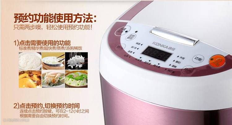 ③其次,奔腾电饭锅还有控温以及定时的装置,限位器与恒温器保证了奔腾电饭锅的温度,让熟食不冷化,而且锅的温度不会太高,保证了触摸者的安全。此外,发条式的定时器可以设定多个小时,早上不必早起,就可以吃到热腾腾的米粥了。
