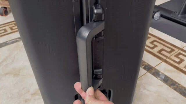 一般来说,在我们放开把手后,把手会在弹簧的作用下迅速归位,“啪”的一声打到箱体上,这还算轻,有的把手由于反弹效果太强,可能会像捕鼠夹一样猛夹你的手指。