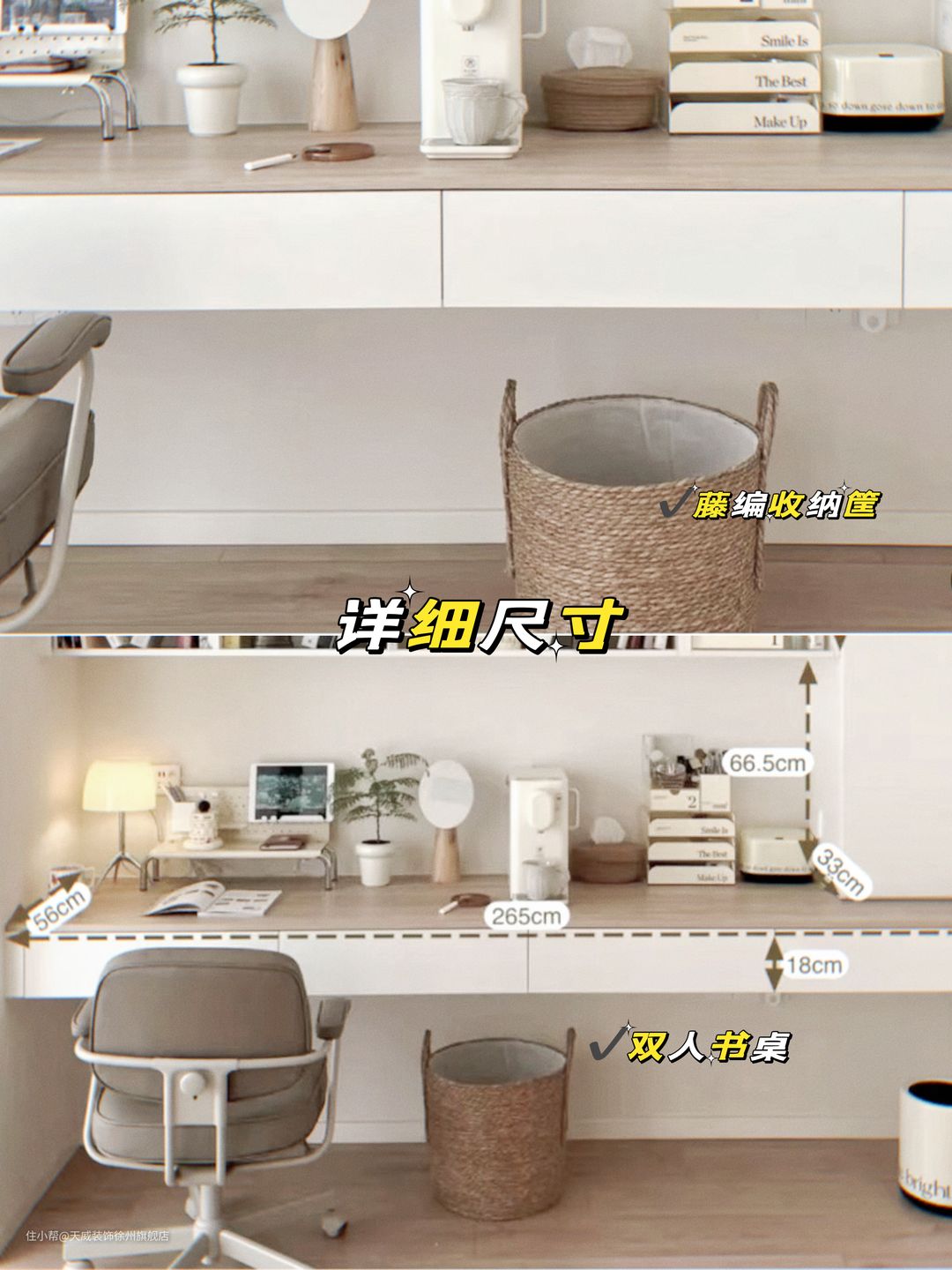 ✔️书桌尺寸:长265cm*深56cm 离地80cm
