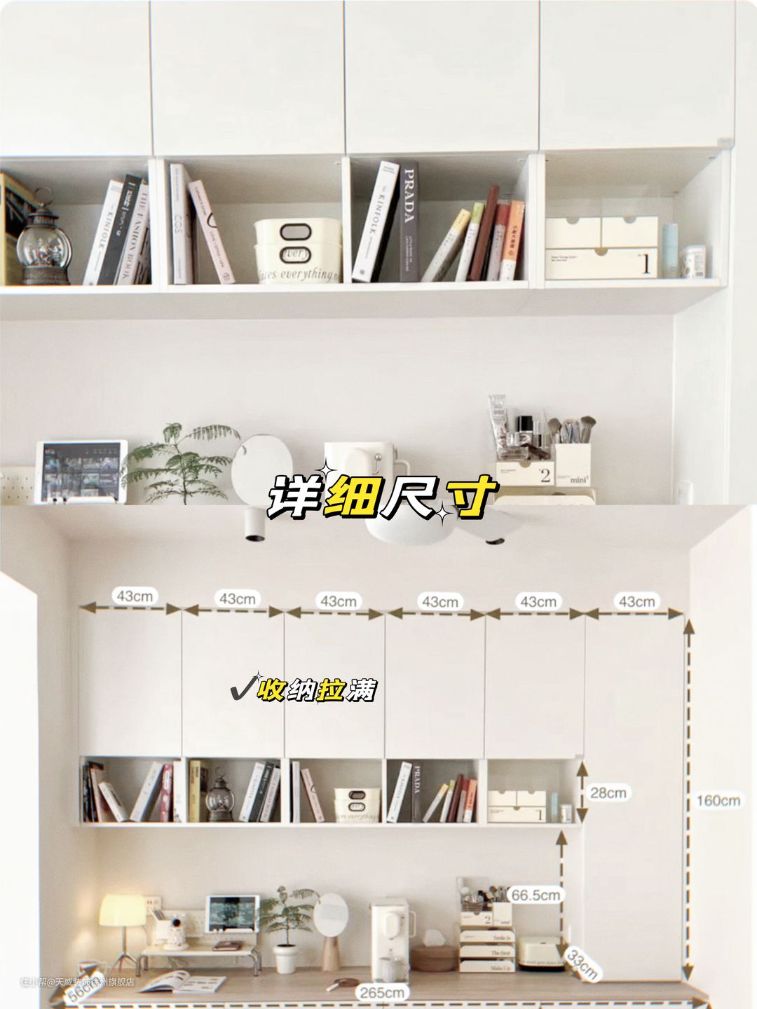 🔹增加办公学习功能区,吊柜可以作为书籍存储空间使用