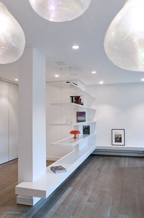 要么借着立柱四周改书架,开放式还是封闭式,随你自己决定,但咱们要注意下避免边角的磕碰问题,尤其中小户型更得多上心,有想法的还能跟卡座相结合。