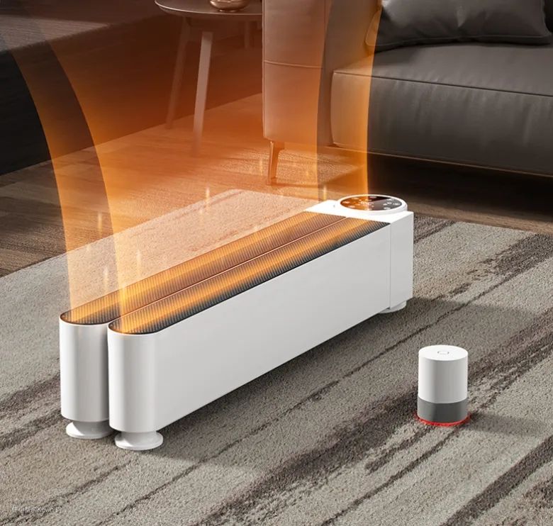 踢脚线和快热炉是通过加热器里面的炉片,加热空气来实现全屋取暖的效果。