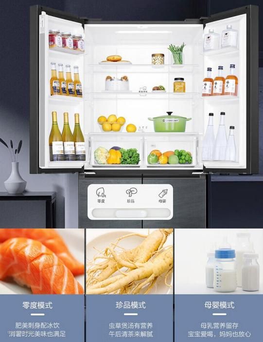 十字对开门方式,让冷藏区和冷冻区更独立,相不串味,多达10个收纳区,也更有利于食材的细分。