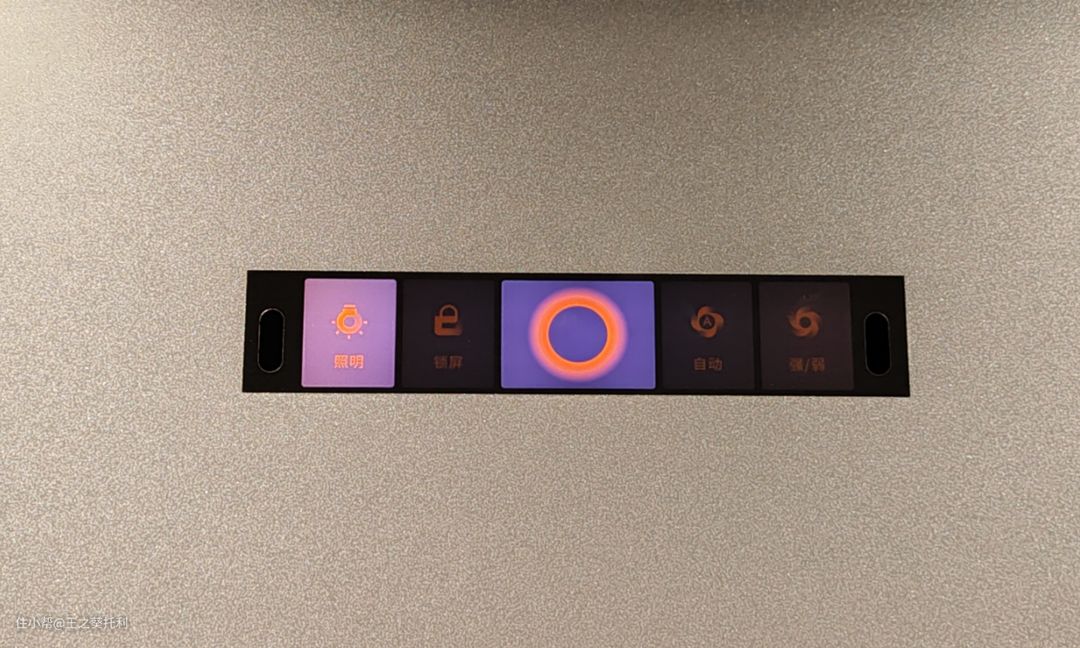 方太F1新月油烟机正面居中位置有一个多彩UI面板,可通过触控切换烟机的运行模式,调节风速、照明等。多彩UI面板一方面可以提升整体的颜值,另一方面也让操作命令变得更加清晰明了,操作简单,上手非常容易。