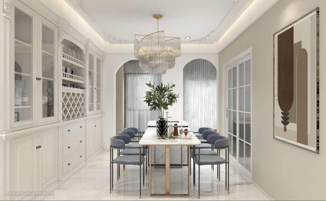 奶咖色的柜具搭配流苏水晶感的吊灯,极尽法式的轻奢与浪漫温情。