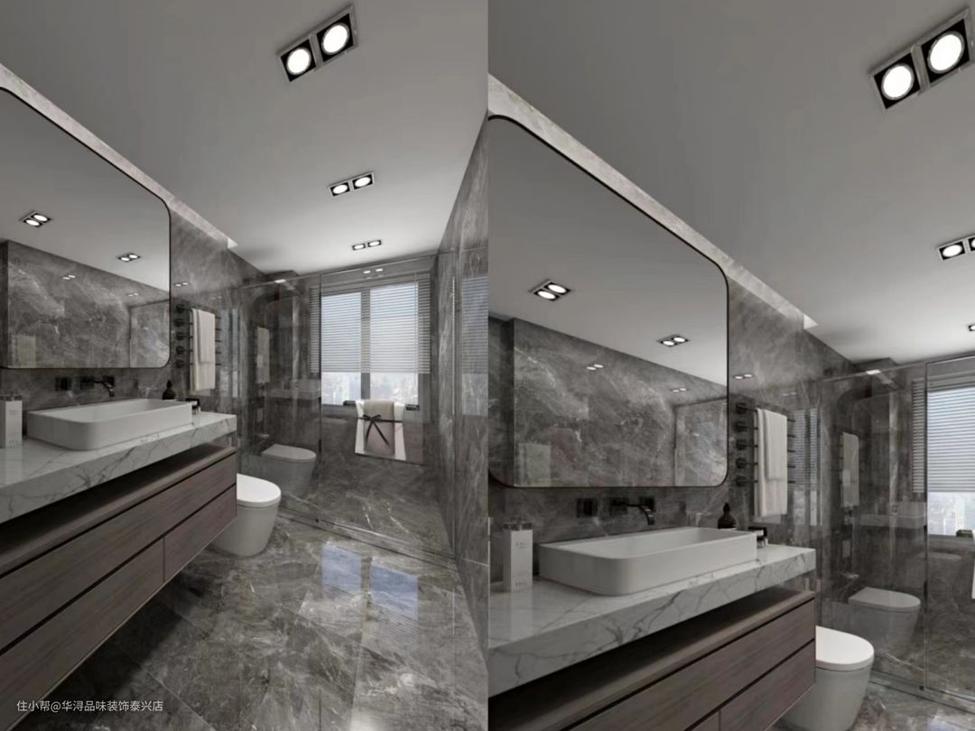 的大理石瓷砖搭配白色大理石洗手台,丝丝透露凉意,光泽和质感达到极致。