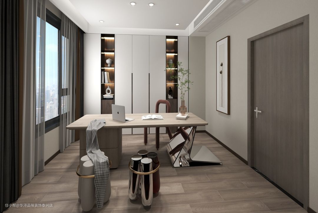 书桌椅的设计极为吸睛,半木质和半金属的不同材质的灵魂碰撞,带给我们新奇的涉猎与感受。