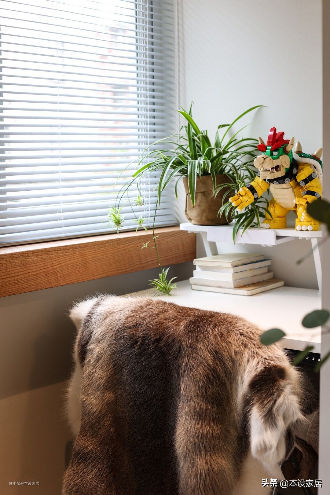 有了洗烘一体机,阳台不再只是晾晒功能了,上海妈妈在两边定制了写字桌,为两个儿子提供了阅读和写作业的空间,学习累了,转头就能欣赏窗外的景色,很解压,也很治愈。