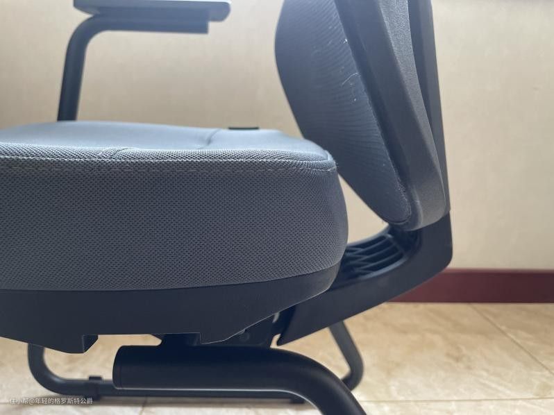 我尝试了用手去移动坐垫,发现非常困难,但坐在椅子上就能轻松前倾,这样设计能保证我们在休息时坐垫始终保持一个延申的状态。