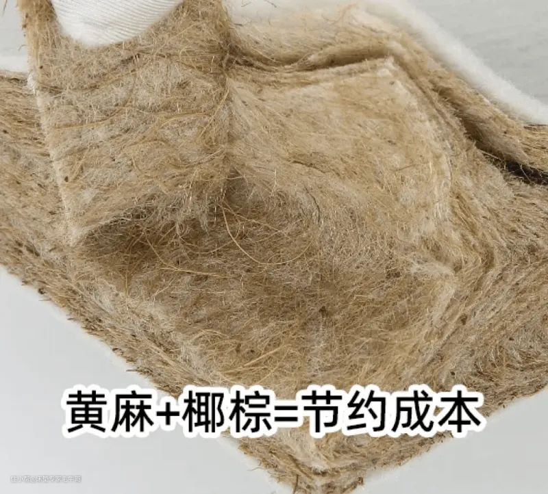 大部分厂家都采用孟加拉国黄麻纤维,通过加入约不同比例的聚酯纤维/低熔棉,经过梳理、铺网、烘箱热压成型。