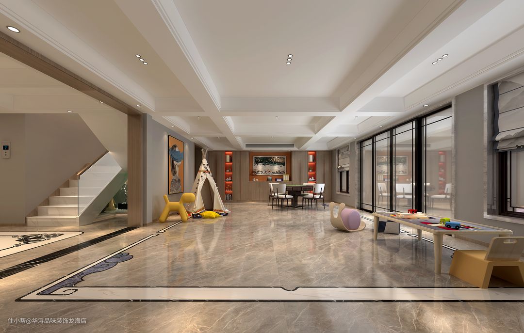 台球区、影音区、儿童游乐区等休闲空间,昭示着屋主兴趣爱品质,自由多元的功能要求得以满足。