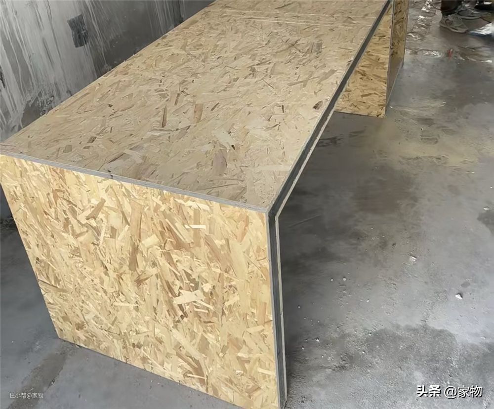 再来说说欧松板,我们常说的OSB板其实就是欧松板,我个人觉得算是一种高配的颗粒板,它主要是用刨片的木头压制而成,硬度超强的同时,还比颗粒板更不容易断裂。