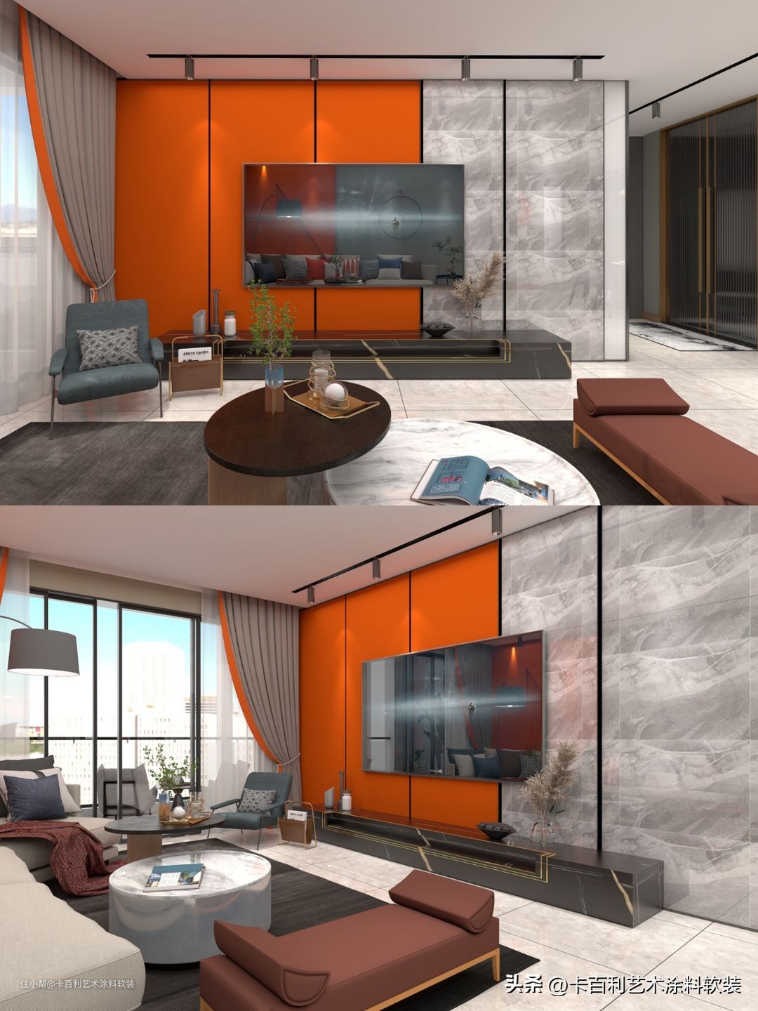 墙面选用向日葵橙艺术涂料在家居软装,打造轻奢风格的点睛之笔