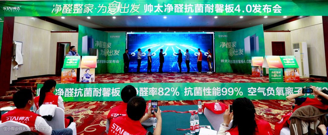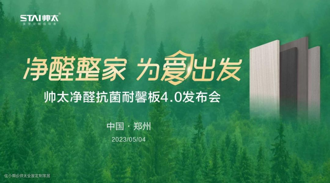 2023年5月4日,帅太整家定制“净醛整家,为爱出发”净醛抗菌耐馨板4.0发布会在中国·郑州成功举办。会上,帅太整家定制聚焦现代家居生活环境,产品体系进行了全方位升级,从单产品环保到整家环保的健康维度剧变,重磅推出帅太净醛抗菌耐馨板,满足消费者的环保健康的家居梦想。