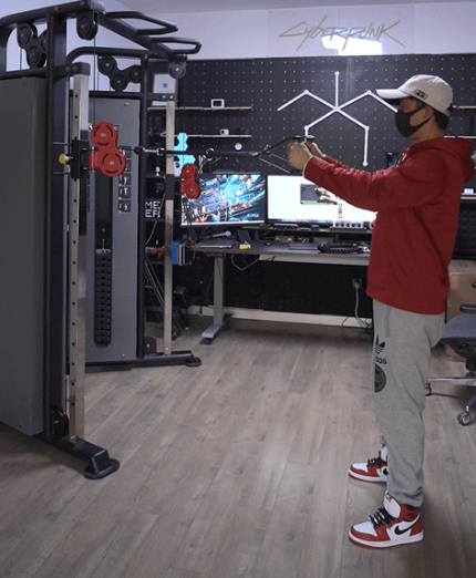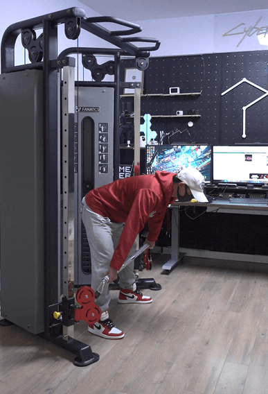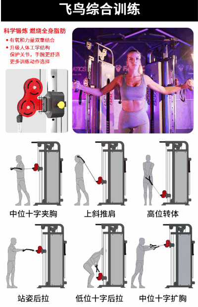而且它还有非常多的独占功能!,比如面拉、飞鸟夹胸、绳索下压练三头、引体向上等等。这些其他器械都做不到。