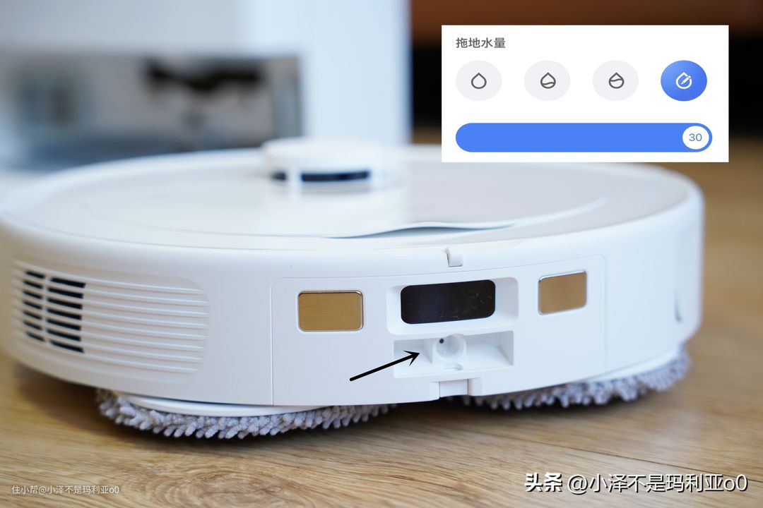 除了它的拖地方式外,要想地板干湿均匀,机身内置水箱也十分重要。石头P10就内置了一个80ml的的水箱,它会在拖地时不断出水,打湿拖布,避免拖布越拖越干,让湿度更加均匀,针对不同的清扫环境更是有30级出水量可调,你想想,这跟我们平时手动拖地是不是很像,想要地板湿一些就少甩几下,想要干一些就多甩几次。
