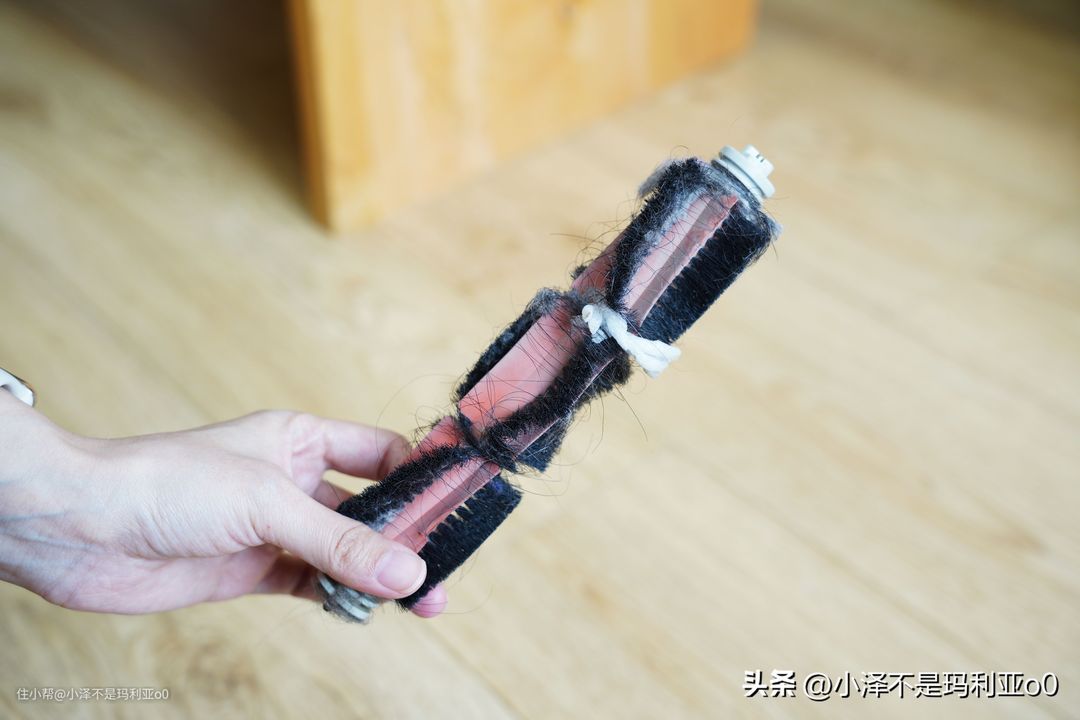 除了出色的清洁表现,要想用的省心,主刷的材质也很重要,尤其是我这样的长发女生,家里还养着宠物,每次清理滚刷上缠绕的毛发就像是噩梦一样,虽然很多扫地机也配备了小刀片,可就是很难切断,难不成是我发质太好的锅?