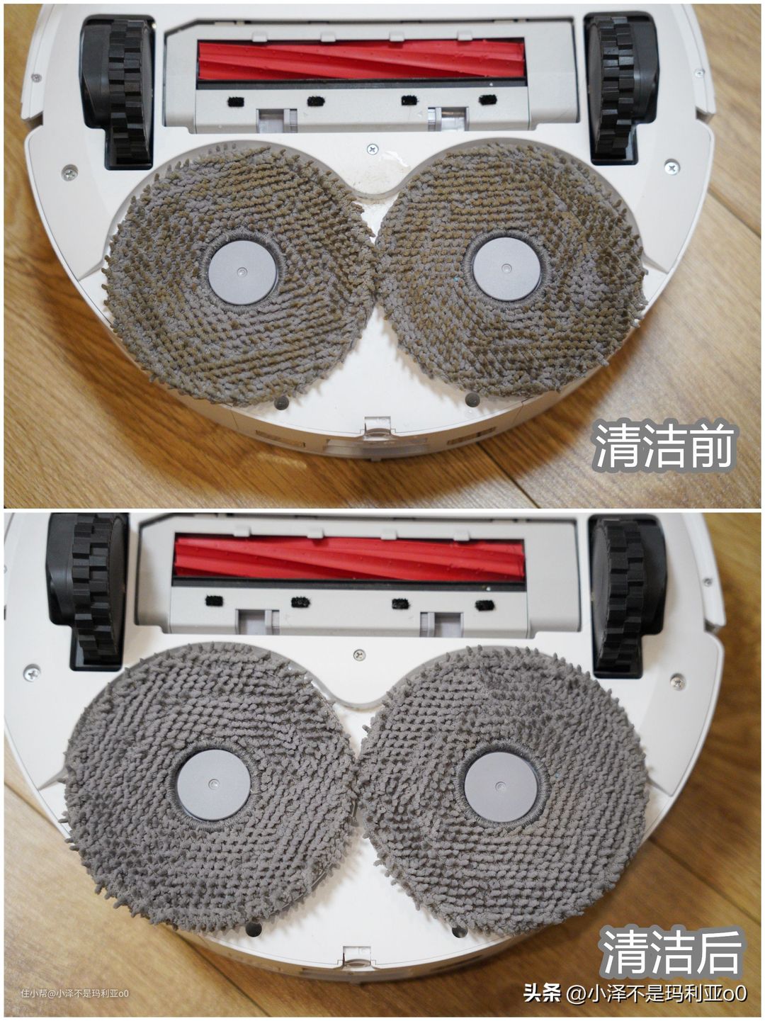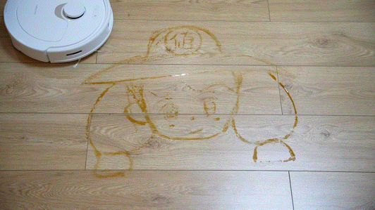 P10旋转拖地的方式对于顽固污渍效果出奇的好,不论是干了一晚上的酱油渍,还是蜡笔在地上的涂鸦,他都能轻松应付。