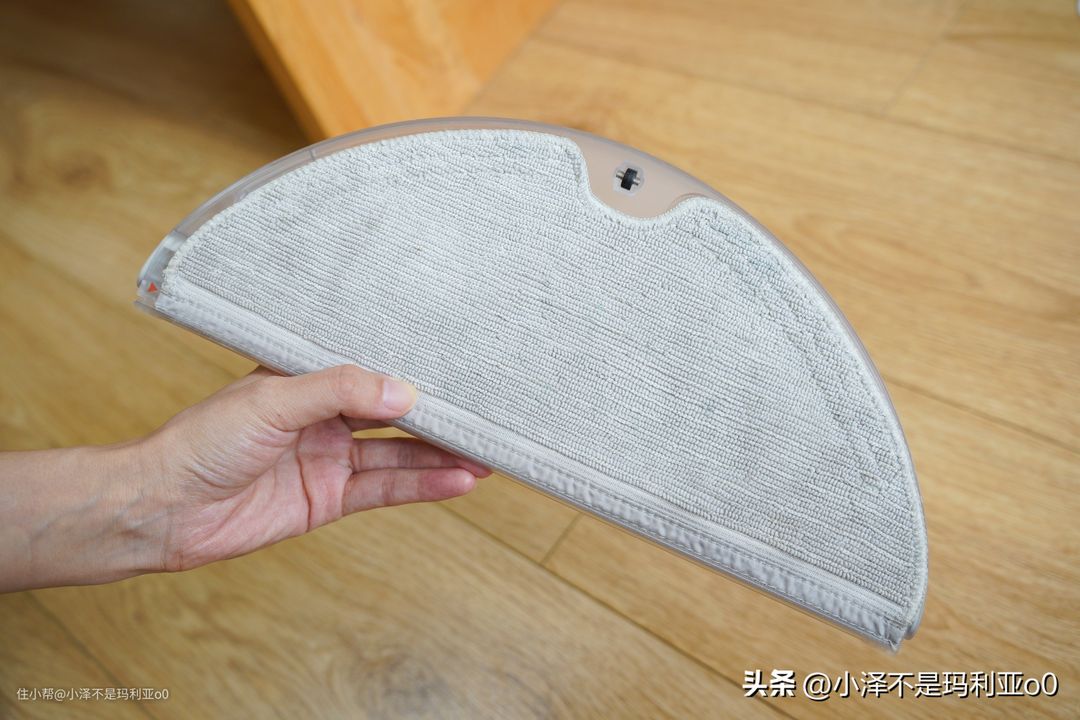 如果你比较关注扫地机器人的拖地功能,看到这样的拖布一定要及时止损!因为真的很鸡肋,半圆形的拖布与水箱连在一起,不仅加水超麻烦,就这么一片小小的拖布,扫地机要挂着它清洁整个屋子,先不说拖地效果,这拖布如果中间不清洗就会越来越脏,你想想,用它拖完的地板能干净么?