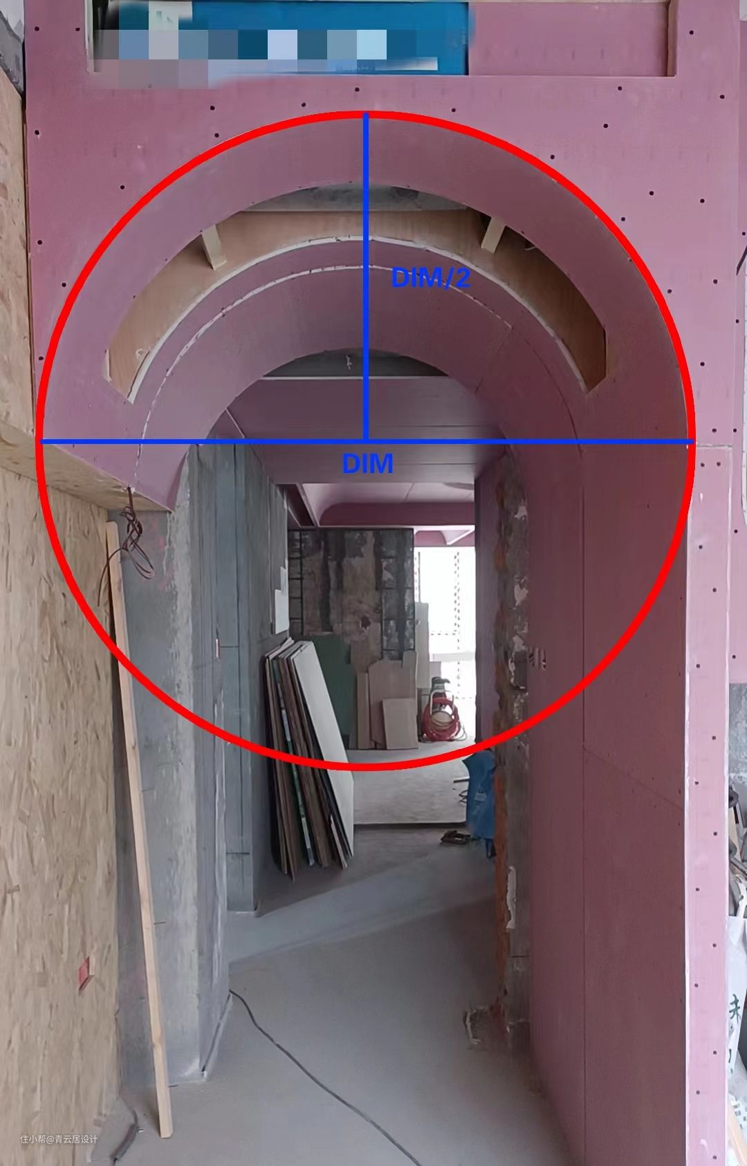 拱形门一般是以门洞的宽度进行画圆,然后除以2