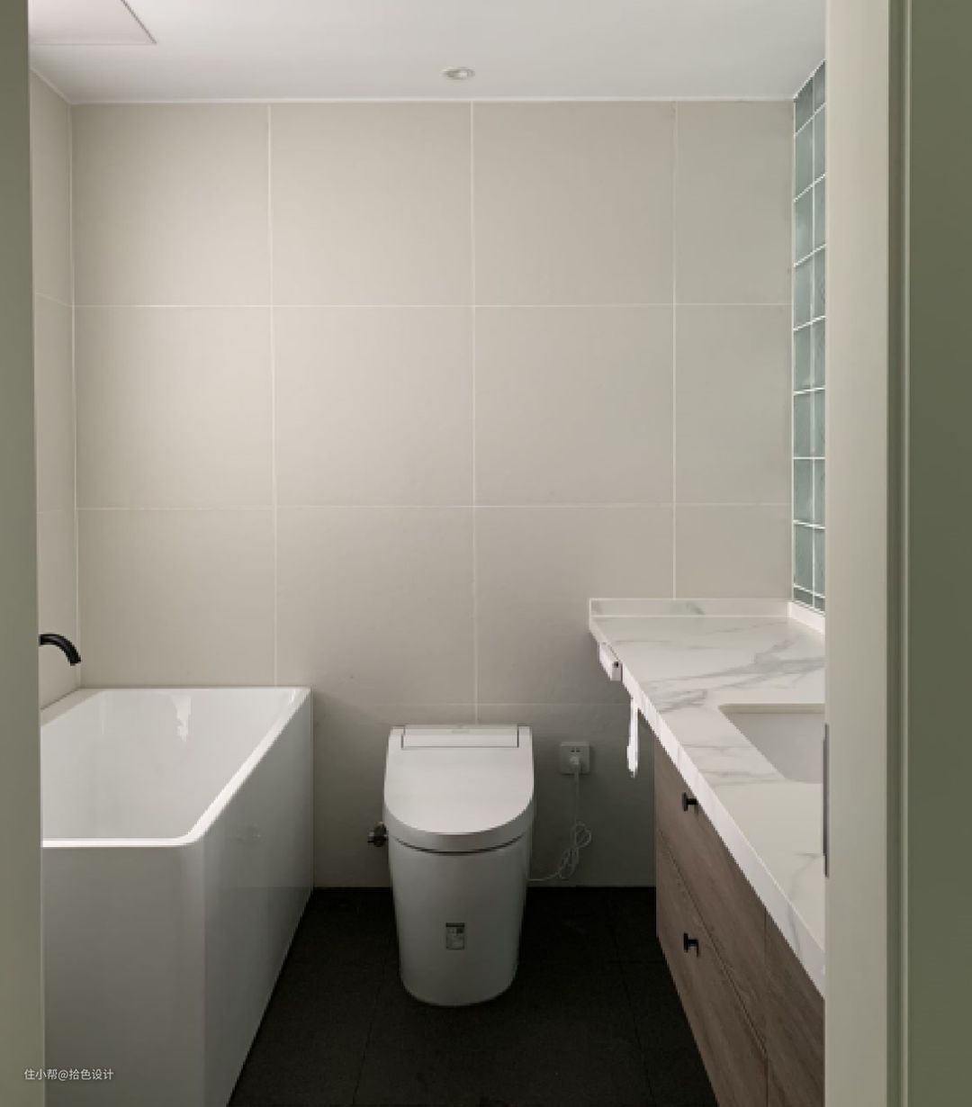 客卫做了干湿分离布局,并给干区增加了双台盆功能,让生活更有效率。同时,玻璃砖隔断,也有效增强了空间的通透性。