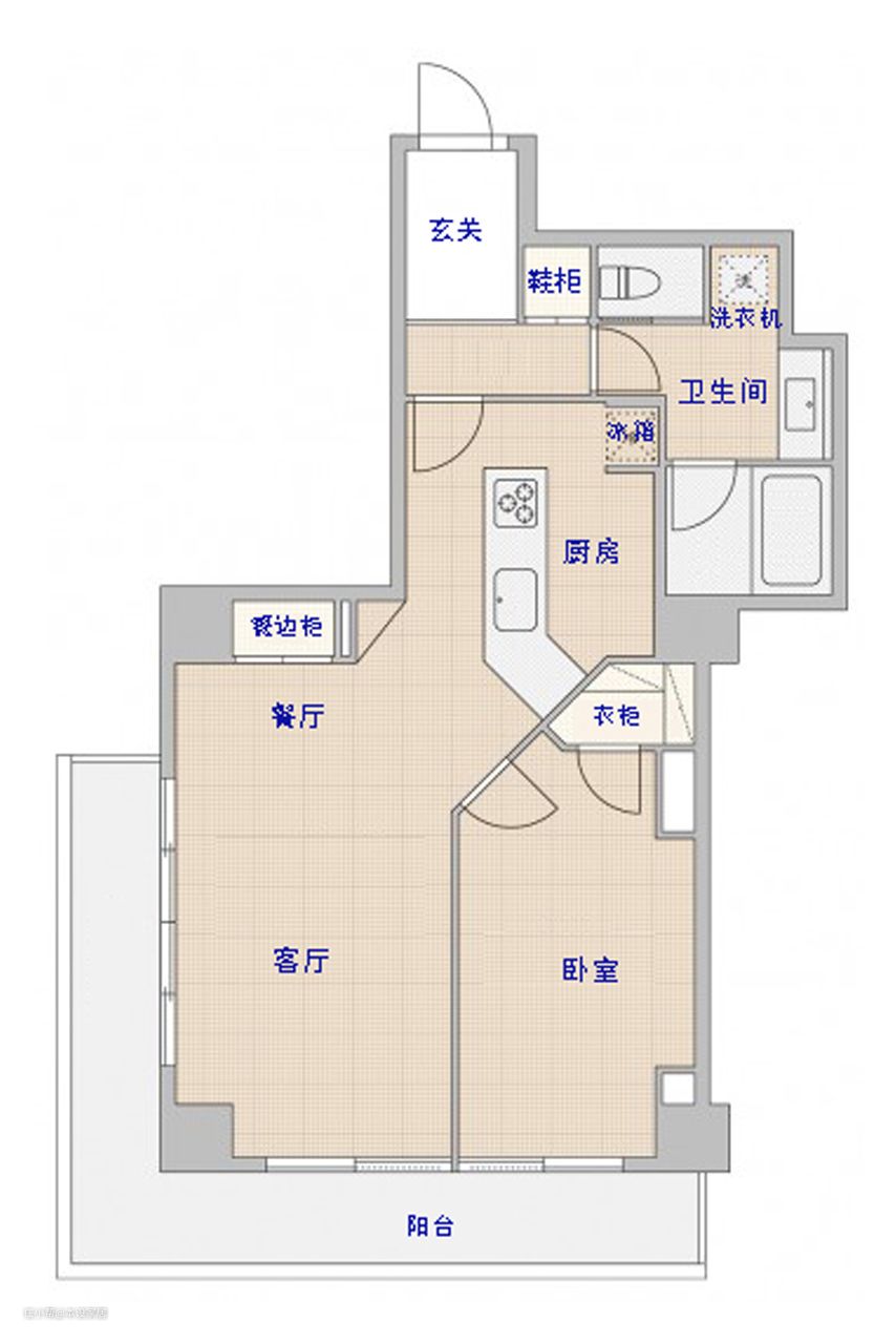 这套房子实用面积约64㎡,一个人住刚刚好,卧室和客厅布置在南面,厨房居中,卫生间在北面,在装修时基本未做调整。