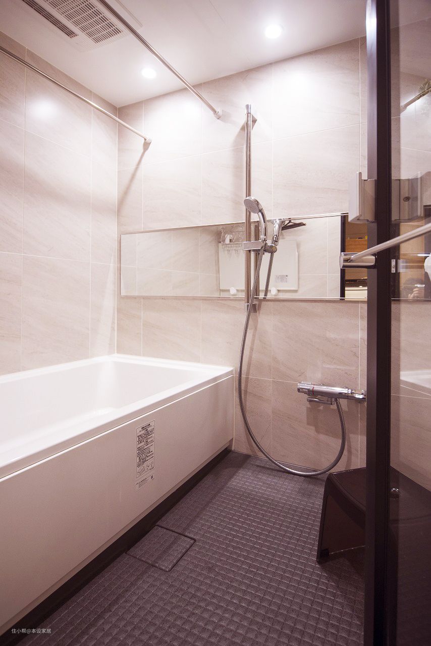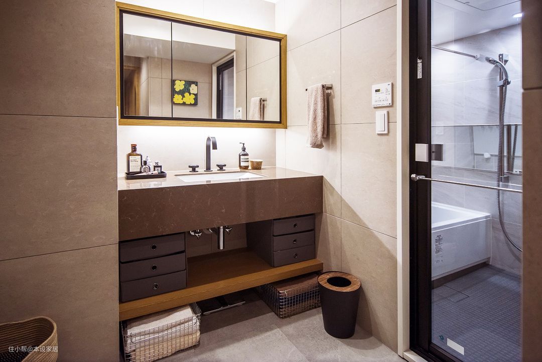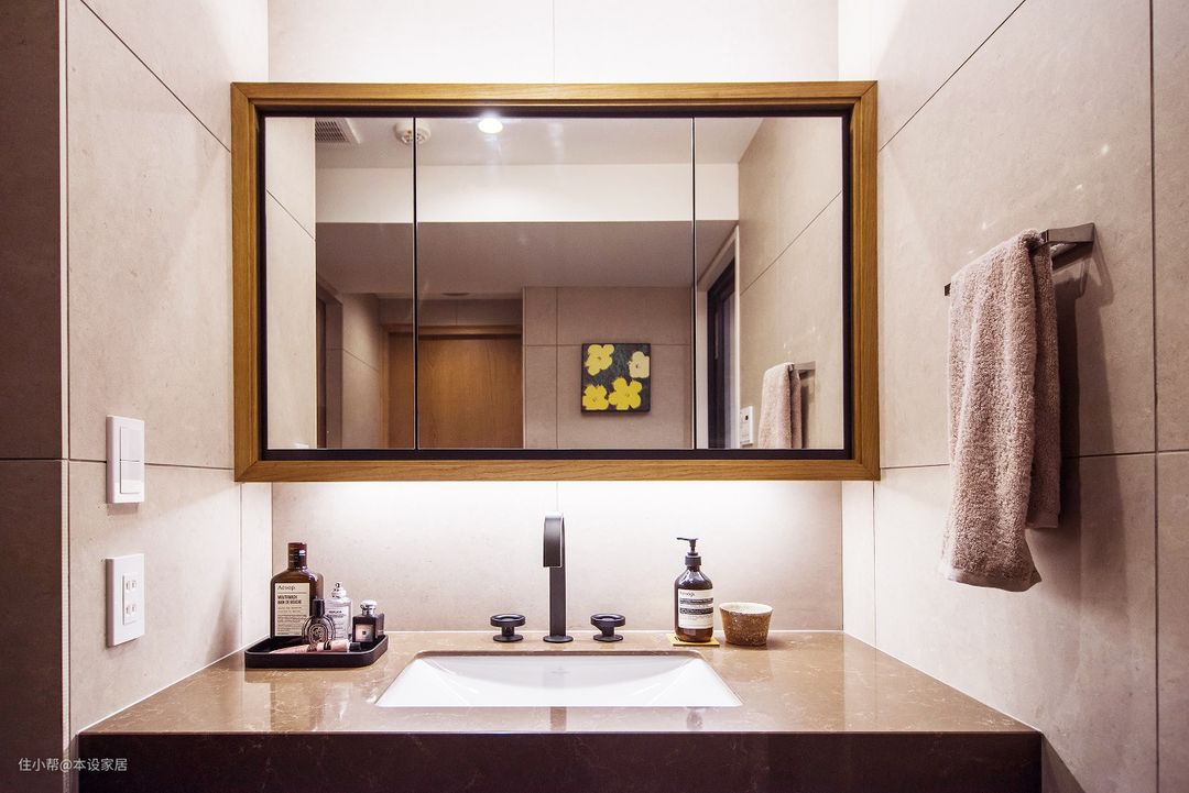 卫生间采用干湿分离,洗手台居中,马桶间和洗浴间分两边,还嵌入式安装了洗烘一体机,规划的明明白白,空间一点都没浪费。