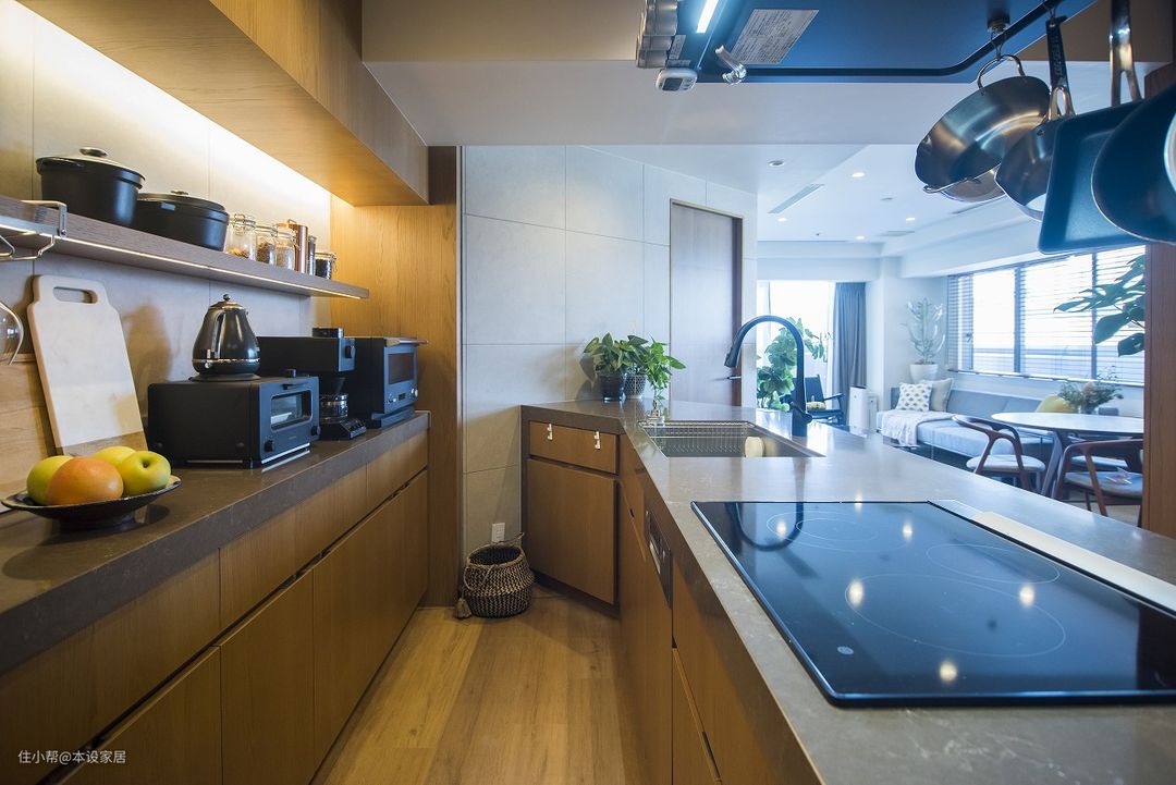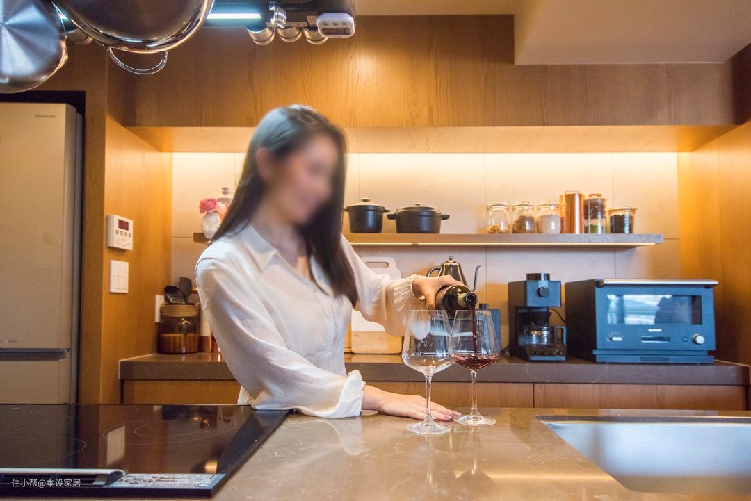 对于小户型家居,厨房的空间一般都比较小,但是Mini小姐姐是美食爱好者,为了健康和营养,坚持自己做饭,设计了一个超大的开放式厨房,不管是采光还是通风都非常好。